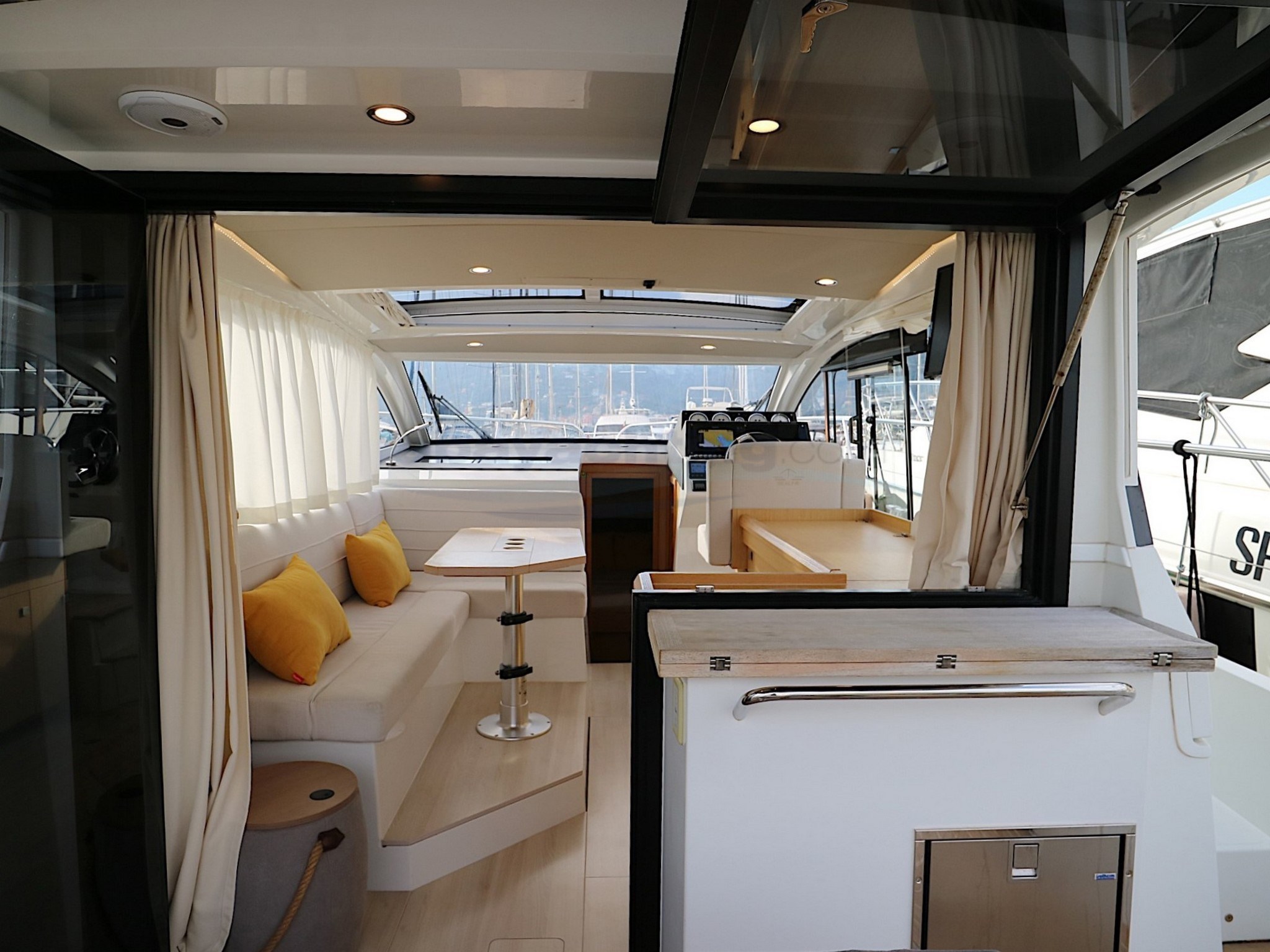 At less than 10 meters long, this Sealine C330 offers something that many larger boats do not: two separate, comfortable, and bright cabins. On board, you will find everything you need to enjoy the sea without limits: a 220V generator for total autonomy, a bow thruster for easy maneuvering even in port, and an enlarged stern platform in synthetic teak that provides extra space to enjoy in the sun. With a closed dinette, hot/cold air conditioning, a full kitchen, and a hydraulic gangway, it is the right choice for families or couples looking for comfort, privacy, and freedom. Used Sealine C330. The information contained in this document is not to be considered contractual.