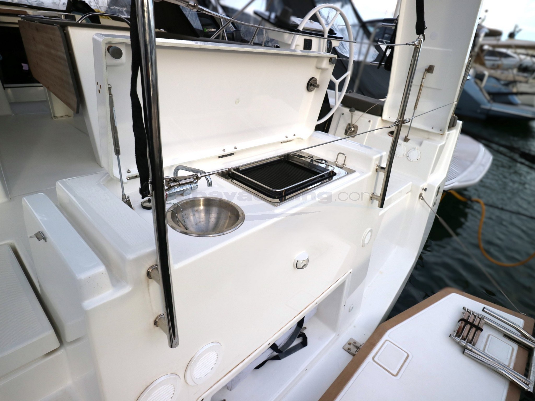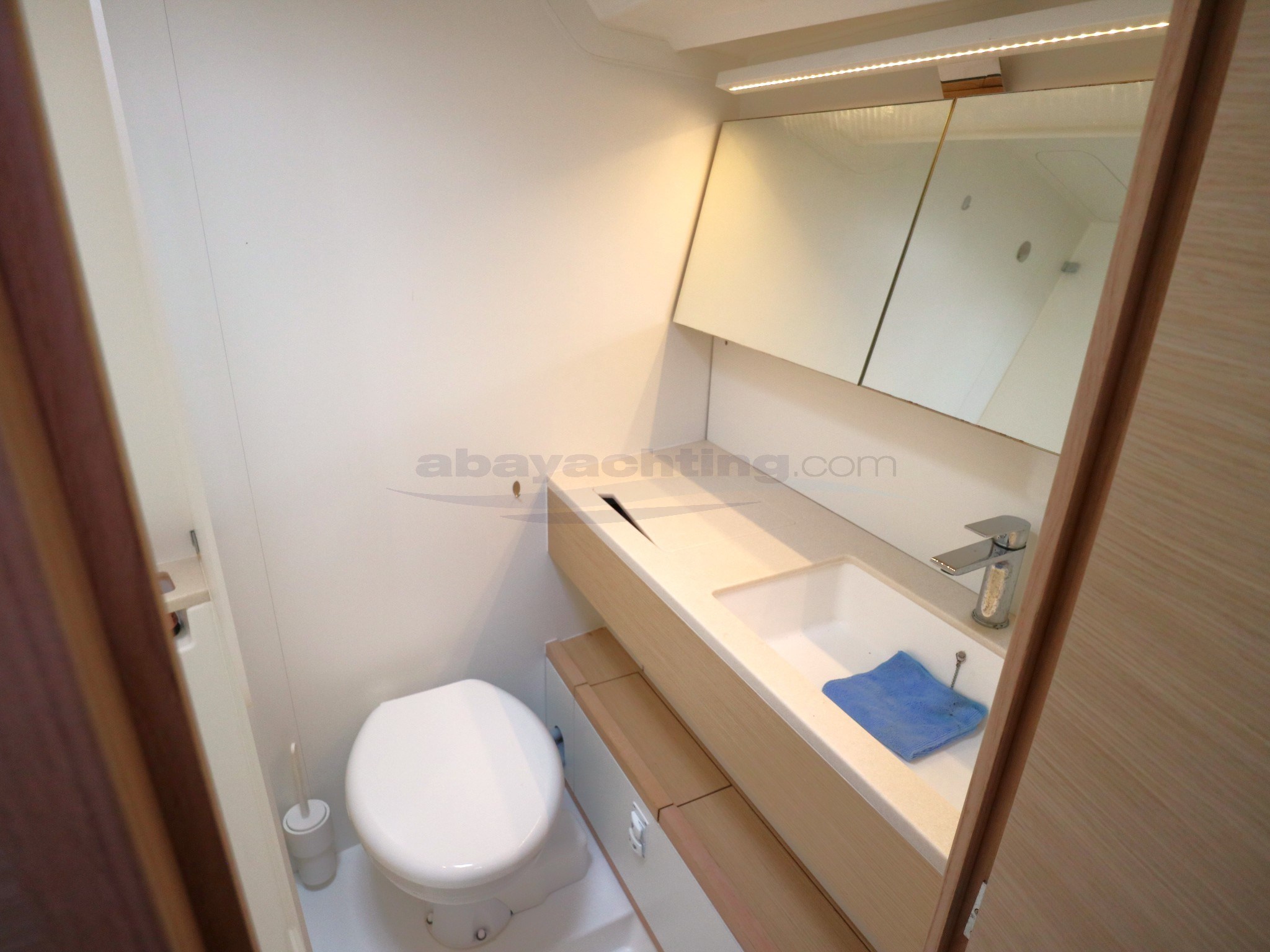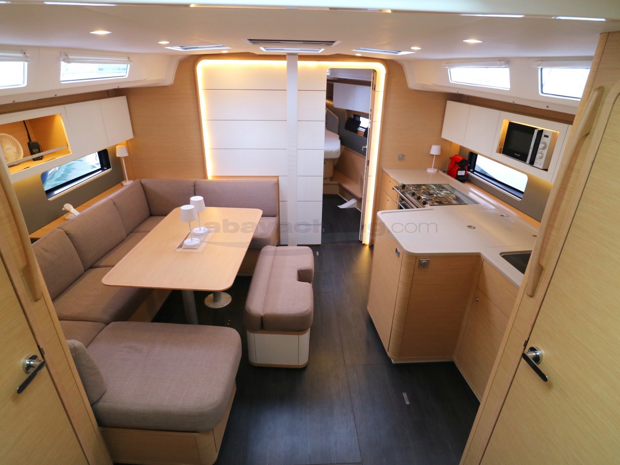 Dufour 41 owner's version, never used for charter. Three real cabins and two bathrooms: a layout designed for those who want to enjoy the sea without sacrificing practicality. This 2024 Dufour 41 is an excellent alternative to a new model: same model, same onboard experience, but with immediate availability. Designed for comfortable living with family or friends, it offers a cozy and functional living area, a kitchen complete with oven, microwave, and refrigerator, and a perfectly equipped cockpit with folding table, grill plate, and outdoor sink: everything at your fingertips. The double helm makes every maneuver easy and leaves plenty of space for livability on board. The bow thruster and electric winch simplify operations even with a small crew. Completing the equipment: folding platform, bimini and sprayhood, Fusion stereo, B&G electronics complete with autopilot and triple display. Easy to use, comfortable to live in, ready to set sail. Used Dufour 41. The information contained in this document is not to be considered contractual.