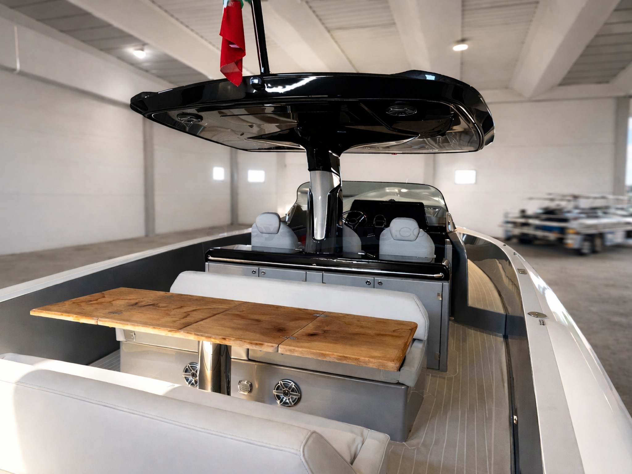 Primer lanzamiento y primer uso en 2024. Líneas elegantes, manejo intuitivo y equipamiento de primera calidad: este Solaris Power 40 Open representa una alternativa concreta e inteligente a lo nuevo, con la ventaja de estar disponible de inmediato, sin tiempos de espera. La disposición con dos camarotes y un aseo separado garantiza privacidad y comodidad a bordo, mientras que la cubierta solar trasera con apertura eléctrica transforma cada parada en un momento de relajación total. El joystick de Volvo, el piloto automático y el propulsor de proa hacen que cualquier maniobra sea fácil incluso cuando vas solo. Los exteriores están adornados con teca sintética gris con juntas blancas, una elección moderna y elegante que realza las líneas del casco y garantiza la máxima practicidad y facilidad de mantenimiento. Para completar el equipo: T-Top, cubierta y laterales interiores pintados a alta temperatura, pasadizo eléctrico de acero inoxidable, nevera triple (dos de ellas externas), cocina de inducción, mesa plegable en cabina, sistema de sonido profesional, generador de 5 kW, bimini con postes extraíbles y cubiertas completas. Todo está cuidado con detalle, incluidos los cojines. Un barco diseñado para quienes solo quieren lo mejor, listo para ser experimentado de inmediato. Usé Solaris Power 40 Open. Los datos que aparecen en esta hoja no deben considerarse contractuales.