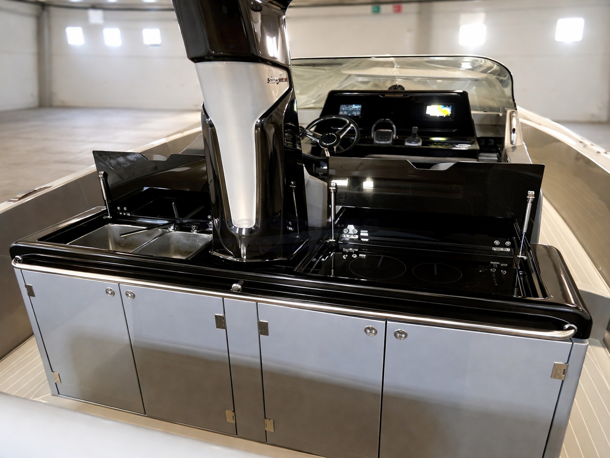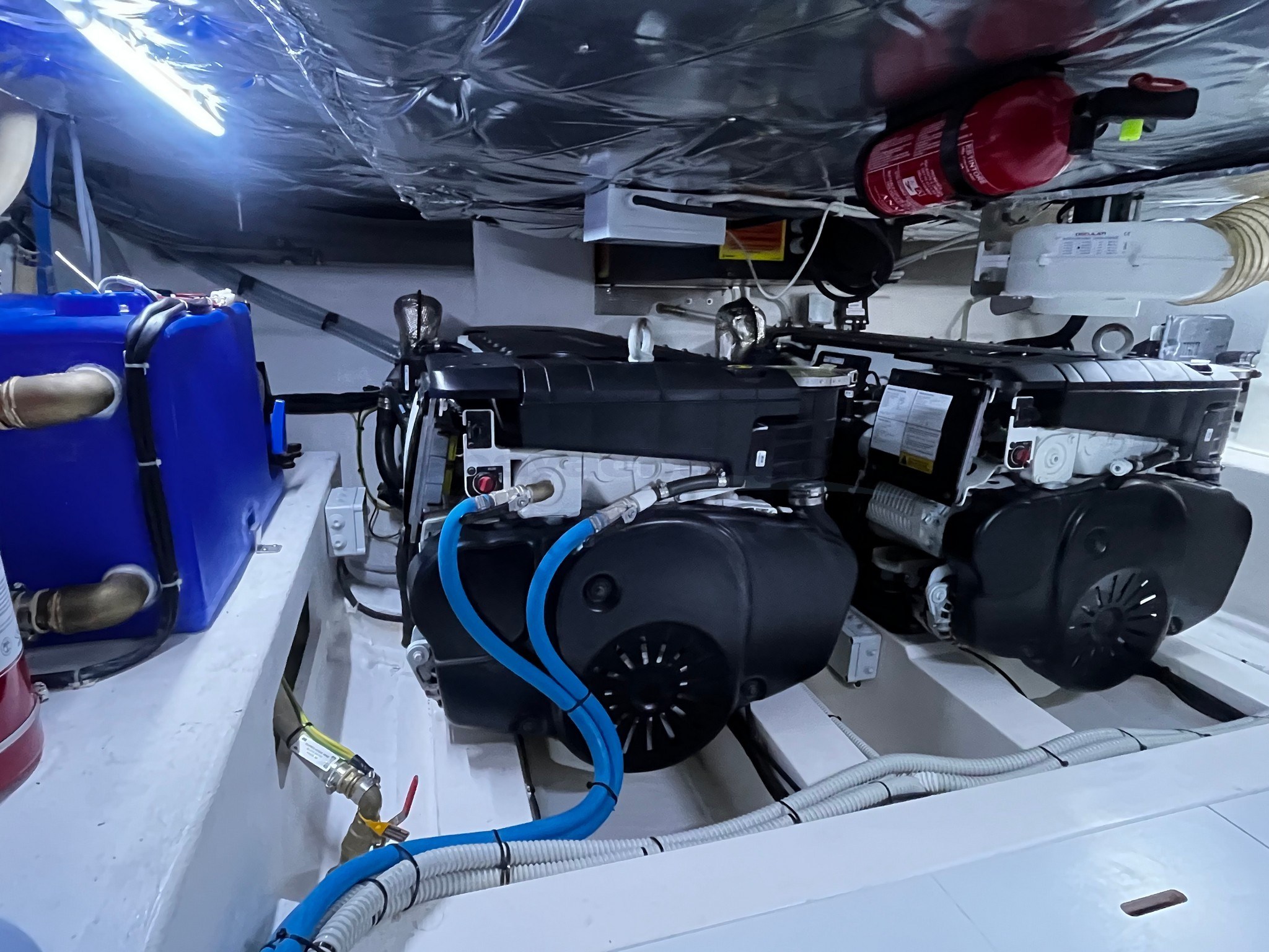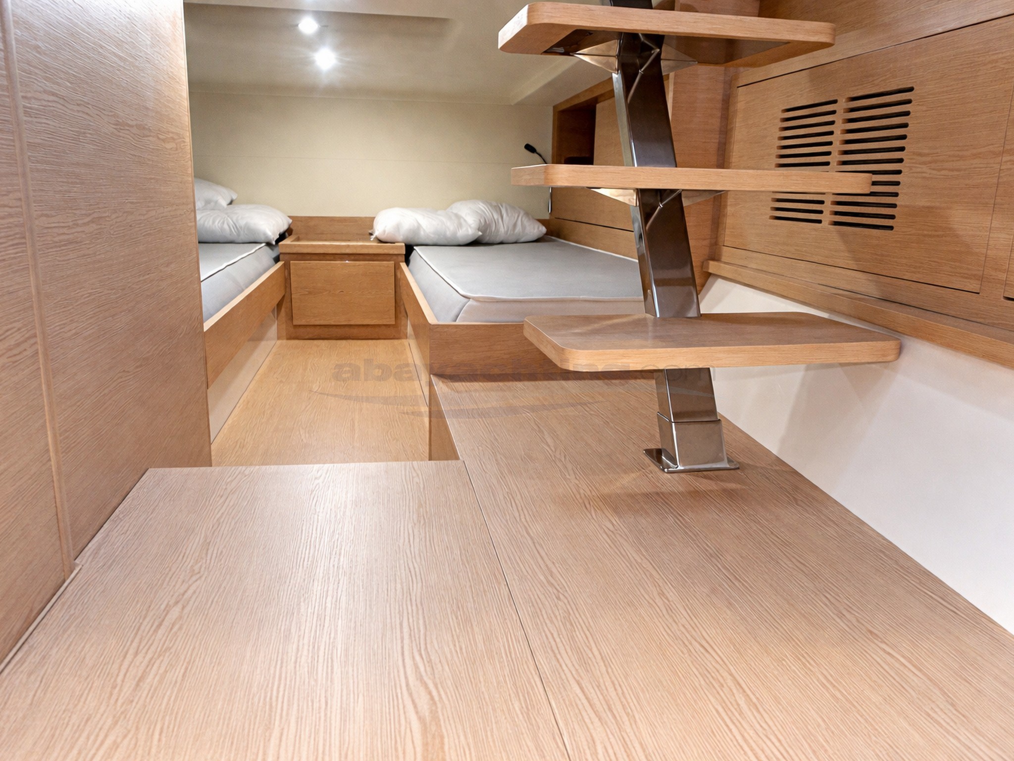 Escotillas que se pueden abrir en la proa. Paquete de luz de cortesía externo. Cargador adicional y dedicado para la batería del generador para la carga por corriente terrestre directa. Toma de corriente adicional en el casillero bajo la cubierta trasera del sol.